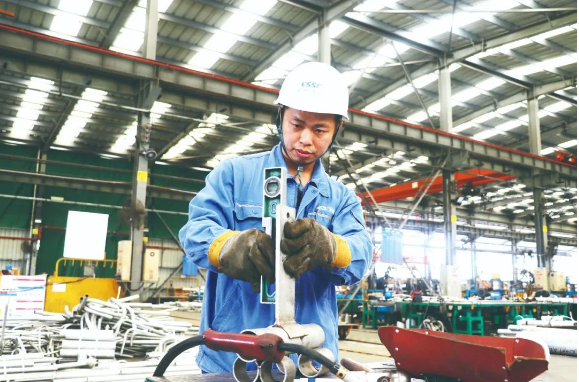 安排完一天的工作計(jì)劃后,中國(guó)船舶集團(tuán)有限公司旗下廣船國(guó)際龍穴管業(yè)加工部有色管工段班長(zhǎng)李秋斌開始對(duì)一段管子進(jìn)行加工。