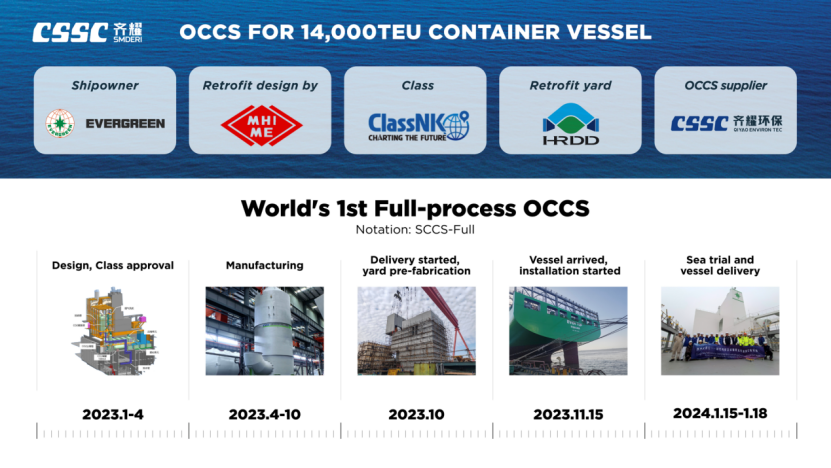 2024年4月底,“長頂輪”將在上海洋山港進(jìn)行全球首次C型罐二氧化碳岸端卸載,這標(biāo)志著齊耀環(huán)保OCCS將成功實(shí)現(xiàn)全流程零碳排放閉環(huán),是船用碳捕集產(chǎn)業(yè)閉環(huán)中的里程碑式案例,將有效解決船東對加裝碳捕集系統(tǒng)的重要關(guān)切。