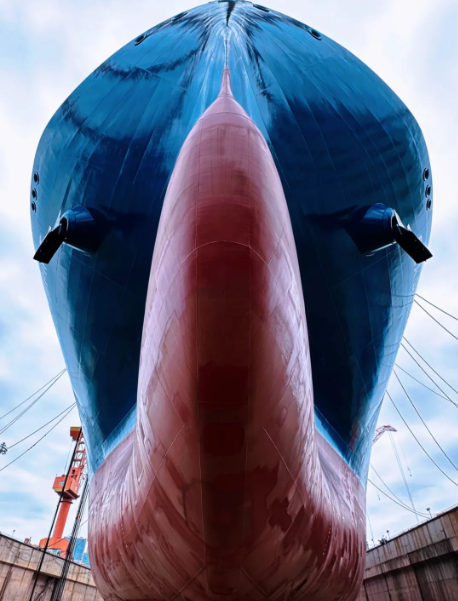 # 通過采用新型雙艉鰭線型,配備空氣潤滑系統(tǒng),進(jìn)一步提升了水動(dòng)力性能,增強(qiáng)了推進(jìn)系統(tǒng)安全冗余;