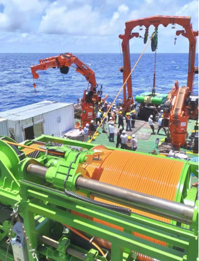 中國船舶集團七〇四所研制的深水重載布放回收絞車助力“開拓二號”布放回收全流程作業(yè),為其刷新紀錄等一系列復雜的深海采礦試驗提供技術支撐。