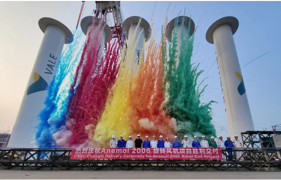 日前,中國船舶集團(tuán)旗下中船澄西為Anemoi Marine Technologies公司建造的最新型5套35米折疊式船用轉(zhuǎn)子帆順利交付發(fā)運(yùn)。據(jù)悉,該項目轉(zhuǎn)子帆將安裝在全球最大礦砂船——40萬噸級Valemax型“Sohar Max”號上,屆時將組成目前全球最大的風(fēng)力轉(zhuǎn)子推進(jìn)系統(tǒng),標(biāo)志著中船澄西在深耕綠色船舶節(jié)能減排、攻堅轉(zhuǎn)子帆建造領(lǐng)域再次取得重大突破。
