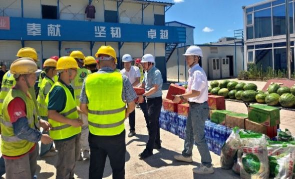 中船國(guó)際工程在項(xiàng)目現(xiàn)場(chǎng)開展綜合檢查工作,并向堅(jiān)守崗位的項(xiàng)目員工及勞務(wù)隊(duì)伍送上防暑降溫物資,叮囑大家要科學(xué)合理安排作業(yè)時(shí)間,切實(shí)做好防暑降溫措施。