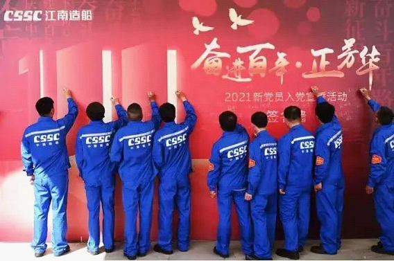 在慶祝中國共產(chǎn)黨成立100周年之際,100名來自中國船舶集團的產(chǎn)業(yè)工人新黨員在江南造船博物館集中進行了入黨宣誓。