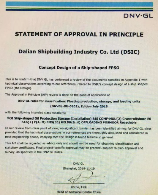 ????11月20日,大船集團(tuán)在總部舉行了“15.5萬噸穿梭油船”和“通用型FPSO”設(shè)計AIP證書頒發(fā)儀式,兩型新產(chǎn)品獲得DNV·GL原則性認(rèn)可。