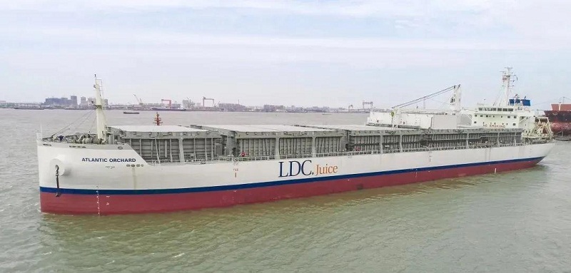 ????該船可以裝載19500立方米橙汁,大約重2萬噸,按照和水一樣的密度粗略計(jì)算,以裝滿500毫升一瓶為基準(zhǔn),該船滿載可裝4000萬瓶500毫升的橙汁,裝載運(yùn)輸能力超強(qiáng)大!這艘船就好比一個(gè)海上移動(dòng)的“大冰柜”,15個(gè)液貨罐均采用食品級(jí)絕緣不銹鋼材料,可裝載零攝氏度橙汁和零下10攝氏度濃縮橙汁,液貨艙始終保持低溫狀態(tài),確保不受細(xì)菌污染。