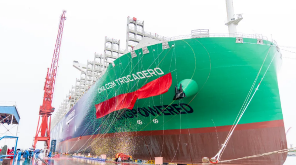 2017年9月,中國船舶集團(tuán)與法國達(dá)飛集團(tuán)簽署九艘23000TEU超大型集裝箱船建造合同,截至目前,已交付八艘。 該系列船均由中國船舶集團(tuán)七〇八所自主研發(fā)設(shè)計,是首次引入液化天然氣雙燃料系統(tǒng)的超大型集裝箱船。因?yàn)樗执笥汁h(huán)保,是名副其實(shí)的海上“巨無霸”,我們都叫它“綠巨人”!