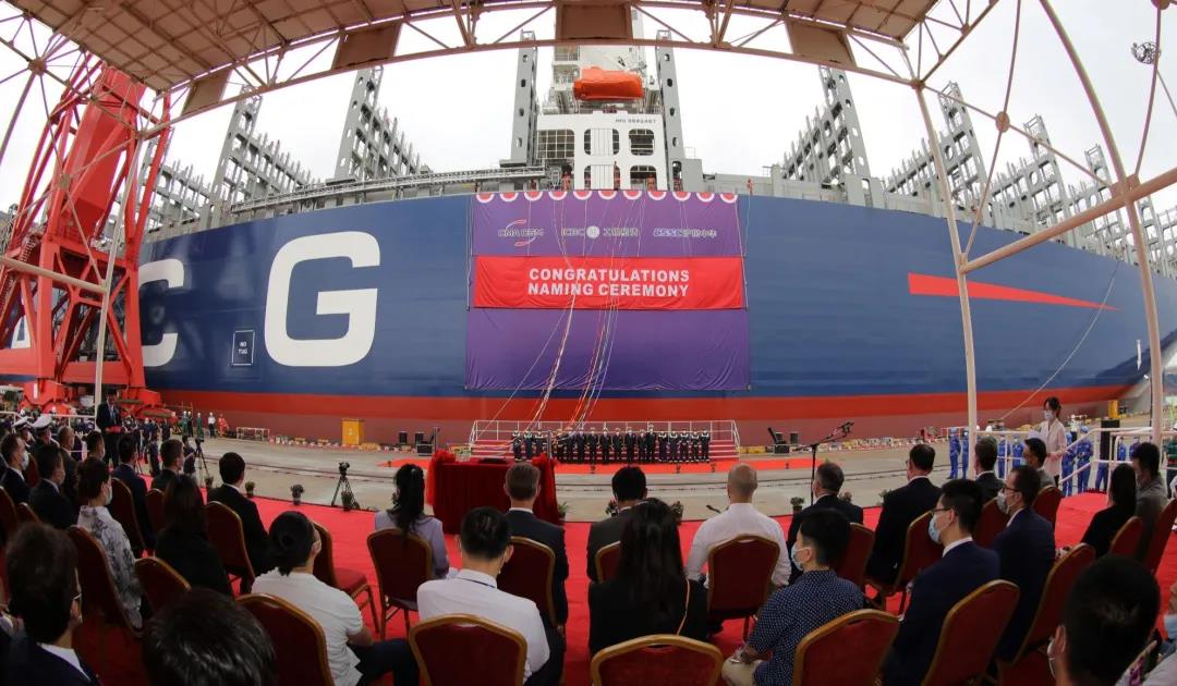 8月27日,由中國(guó)船舶集團(tuán)有限公司旗下滬東中華聯(lián)合中船貿(mào)易為法國(guó)達(dá)飛海運(yùn)集團(tuán)建造的15000TEU超大型集裝箱系列船首制船“達(dá)飛·和風(fēng)”號(hào)命名交付。這是中法兩國(guó)船海巨頭全面落實(shí)2019年中國(guó)國(guó)家主席習(xí)近平和法國(guó)總統(tǒng)馬克龍見證簽署的戰(zhàn)略合作框架協(xié)議的最新成果。同時(shí),也標(biāo)志著“CSSC超大型箱船譜系”又添“新丁”,實(shí)現(xiàn)了對(duì)全球超大型集裝箱船發(fā)展的引領(lǐng)。