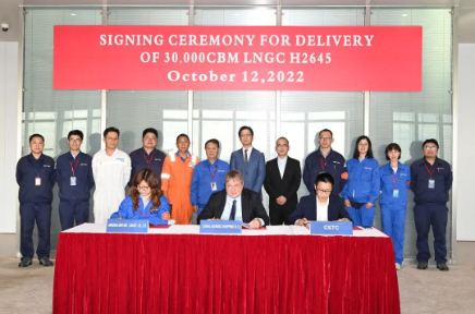 10月12日,中國船舶集團旗下江南造船為荷蘭船東Anthony Veder公司設(shè)計、建造的30000立方米液化天然氣(LNG)運輸船“Coral Nordic”號在上海簽字交付。