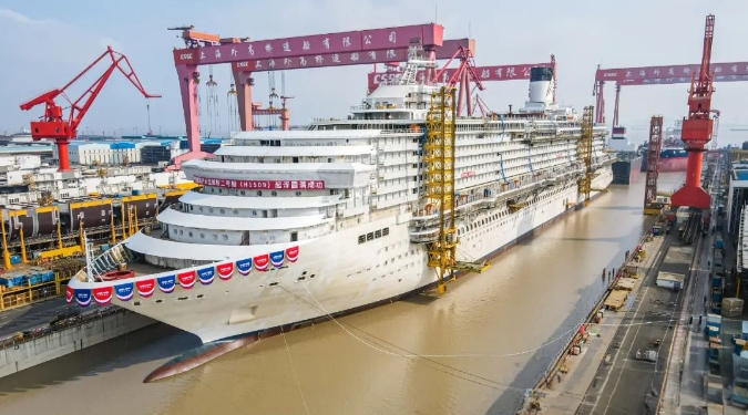 “愛達·花城號”由中船集團旗下外高橋造船于2022年8月開工建造,去年4月入塢搭載,今年1月實現(xiàn)全船貫通?!皭圻_·花城號”長341米、寬37.2米、約14.19萬總噸,相比首艘國產(chǎn)大型郵輪“愛達·魔都號”體量更大、建造物量更多,對設(shè)計建造管理能力提出了更高要求。目前,“愛達·花城號”整體建造進度已超過70%,比“愛達·魔都號”起浮時總進度提前12%,結(jié)構(gòu)總裝周期縮短至9個月,標志著我國大型郵輪建造技術(shù)邁上了新臺階。
