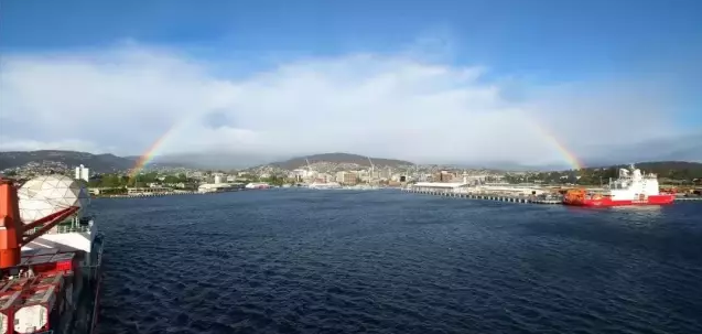 ????當?shù)貢r間11月7日上午,搭載107名中國第36次南極考察隊員的“雪龍”號??堪拇罄麃喕舭吞馗劭?,與先行靠港的“雪龍2”號正式匯合。