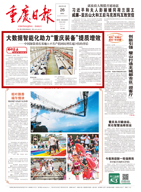 近日,重慶日?qǐng)?bào)頭版頭條以《大數(shù)據(jù)智能化助力“重慶裝備”提質(zhì)增效——中國海裝重慶基地1-5月產(chǎn)值同比增長超3倍的背后》,為題對(duì)中國船舶集團(tuán)旗下中國海裝進(jìn)行了報(bào)道,文章對(duì)后疫情時(shí)代,中國海裝如何履行央企責(zé)任,做好“六穩(wěn)”工作,落實(shí)“六?!比蝿?wù),助力重慶裝備制造業(yè)穩(wěn)步復(fù)蘇,奮力實(shí)現(xiàn)高質(zhì)量發(fā)展的舉措與成效進(jìn)行了深入分析。