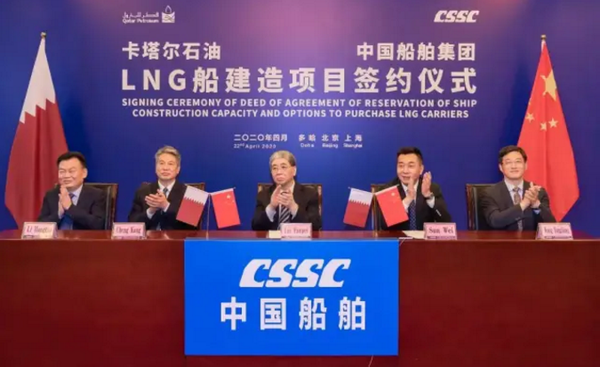 4月22日,中國船舶集團(tuán)與卡塔爾石油公司簽署“中國船舶—卡塔爾石油液化天然氣(LNG)船建造項目”協(xié)議,所涉訂單總金額超過200億元人民幣。
