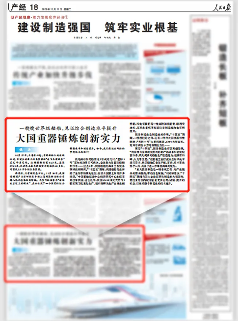 今天,人民日報產(chǎn)經(jīng)專版在《產(chǎn)經(jīng)觀察·著力發(fā)展實體經(jīng)濟》第一期報道《建設制造強國筑牢實業(yè)根基》中將鏡頭對準了中國船舶集團。