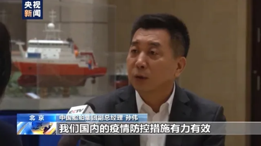 中國(guó)船舶集團(tuán)副總經(jīng)理 孫偉:其中重要的一條,就是我們國(guó)內(nèi)疫情防控措施有力有效,堅(jiān)定了船東對(duì)中國(guó)企業(yè)的信心,我們的研發(fā)人員主動(dòng)作為、創(chuàng)新工作,確保了在疫情下和客戶的溝通交流各個(gè)環(huán)節(jié)的暢通、高效。