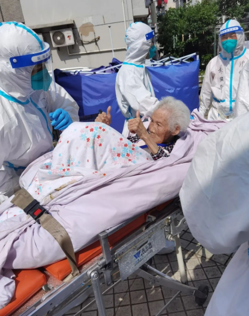 “我們是穿著防護(hù)服進(jìn)去的,突然看到這么多‘大白’,老人們不免有些緊張,問的最多的就是‘去哪里’。隨著我們一趟趟幫著老人下樓、上車,老人們開始逐漸信任我們。因?yàn)檗D(zhuǎn)運(yùn)的部分老人中存在核酸異常的情況,有些老人還會(huì)時(shí)不時(shí)關(guān)照我們要注意防護(hù)。幫他們送上救護(hù)車時(shí),老人還和我們連聲表示感謝。”田雪明說道。