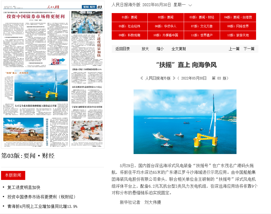 這是“扶搖號(hào)”繼機(jī)組、浮體下線后,再次取得的又一里程碑成果,將對(duì)我國海上風(fēng)電邁向深遠(yuǎn)海,助力“30·60”雙碳目標(biāo)達(dá)成產(chǎn)生重大意義。