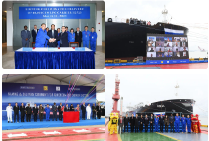 3月31日,中國船舶集團(tuán)旗下江南造船聯(lián)合中船貿(mào)易為日本KUMIAI公司建造的40000立方米中型全冷式液化氣船(MGC)“MIRAI”號(hào)順利交付,中央電視臺(tái)《新聞聯(lián)播》 《新聞直播間》對(duì)此進(jìn)行了報(bào)道。