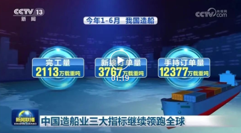 ??數(shù)據(jù)顯示,今年1—6月,我國(guó)造船完工量、新接訂單量和手持訂單量三大指標(biāo)分別為2113萬(wàn)載重噸、3767萬(wàn)載重噸、12377萬(wàn)載重噸,分別占世界總量的49.6%、72.6%和53.2%,以修正總噸計(jì)分別占47.3%、67.2%和46.8%,均位居世界第一,中國(guó)也成為唯一一個(gè)三大指標(biāo)實(shí)現(xiàn)全面增長(zhǎng)的國(guó)家。