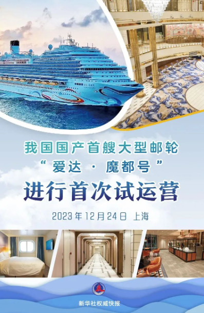 12月24日,國產(chǎn)首艘大型郵輪“愛達(dá)·魔都號”在上海吳淞口國際郵輪港離港出海,進(jìn)行首次試運(yùn)營。