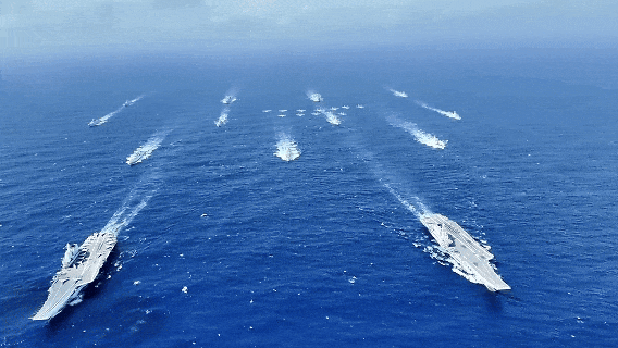 在南海某海域,遼寧艦、山東艦編隊(duì)首次開(kāi)展雙航母編隊(duì)演練,錘煉提升航母編隊(duì)體系作戰(zhàn)能力