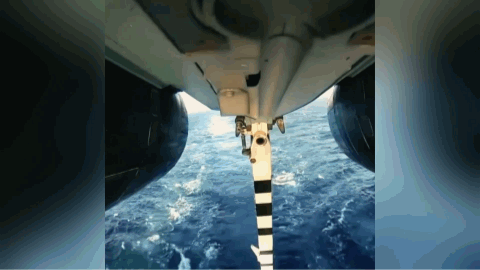 因?yàn)樵诿C4蠛I?,百米高空的艦載機(jī)望向航母,就像一片漂在水中的 “樹葉”。