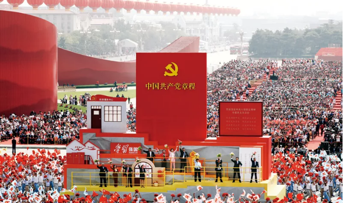 ▲2019年10月1日上午,慶祝中華人民共和國成立70周年大會(huì)在北京天安門廣場隆重舉行。這是群眾游行中的“從嚴(yán)治黨”方陣。新華社記者 蘭紅光/攝