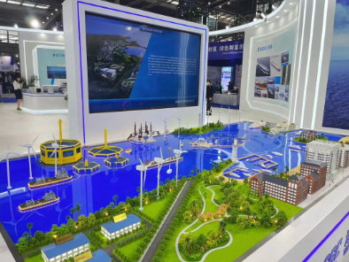 #  10萬噸級大型深遠(yuǎn)海養(yǎng)殖工船、2000噸自升自航式風(fēng)電安裝平臺、耕海一號二期工程等模型以及“藍(lán)色海洋經(jīng)濟(jì)綜合體”沙盤,生動展示出“深海養(yǎng)殖+海上文旅+海上風(fēng)電”互聯(lián)互通的繁榮業(yè)態(tài)景象;