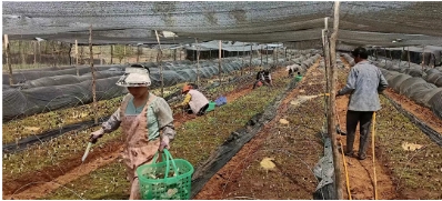 在這充滿(mǎn)希望的季節(jié)里,鶴慶縣六合鄉(xiāng)松坪村羊肚菌種植基地一壟壟羊肚菌破土而出,頭戴獨(dú)特的褐色“網(wǎng)格帽”,在陽(yáng)光下閃爍著光芒,為松坪村繪就一幅生機(jī)勃勃的致富畫(huà)卷。